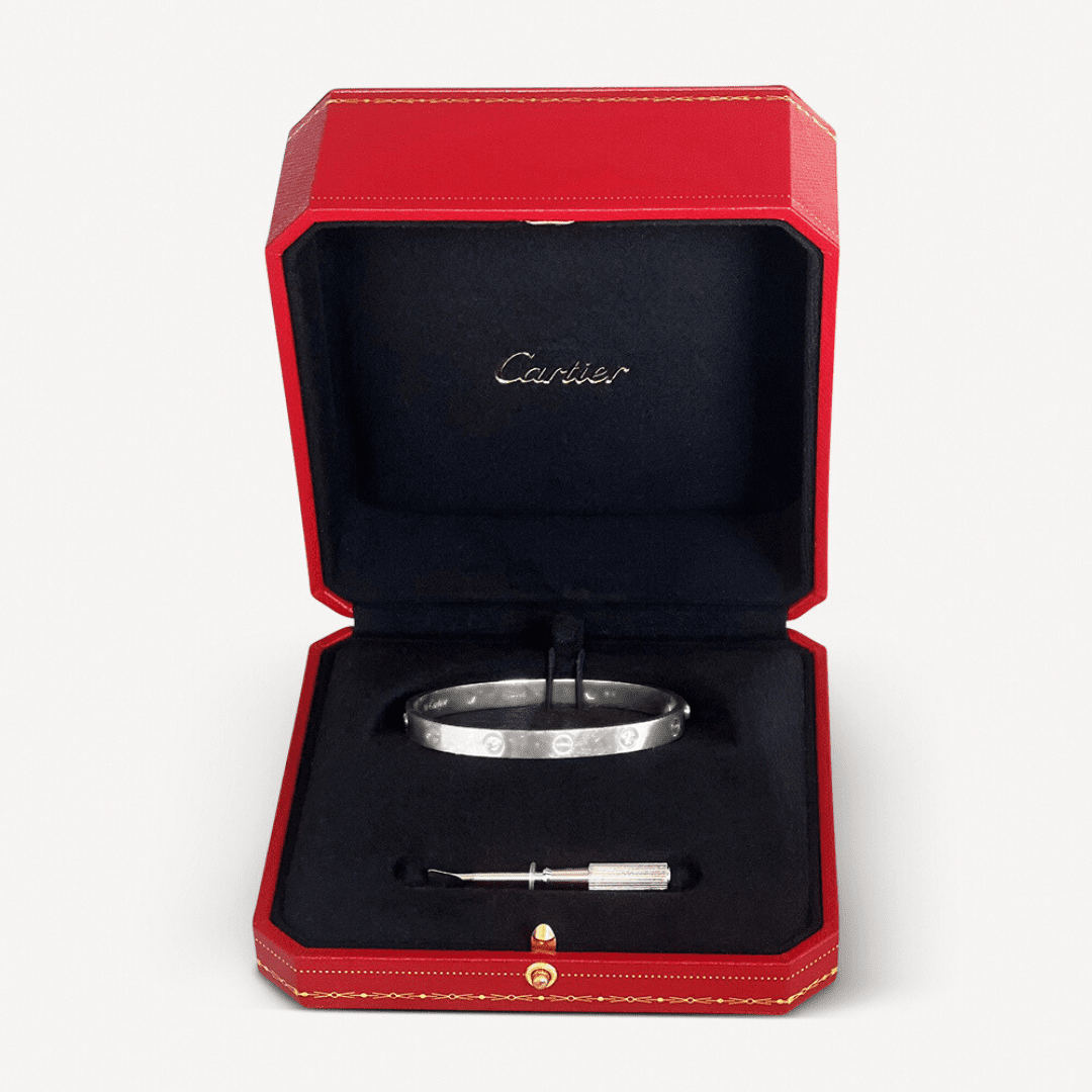Créé à New York en 1969, le bracelet LOVE est devenu une icône de design joaillier. Déclinée en bague, colliers, bracelets, elle symbolise l’amour scellé par un clou avec un design reconnaissable entre tous, pureté des lignes, précision de la forme, justesse des proportions, préciosité des détails.
