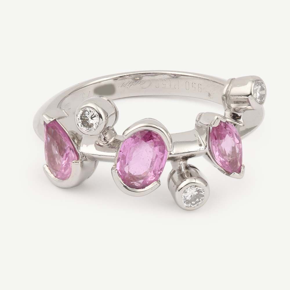 Bague Cartier Méli Mélo en platine PT950, sertie de trois saphirs roses et de diamants.