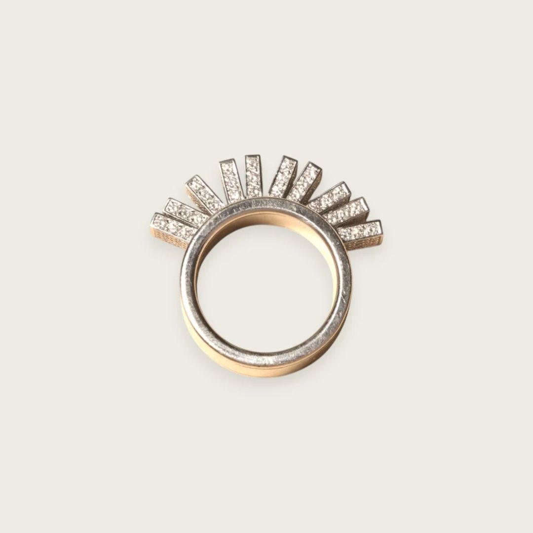 Bague Pailettes Cartier d’occasion en or blanc 750/1000 (18K). Ce bijou est construit tel un éventail, sertie de 340 diamants de taille brillant (environ 4,25 carats : E/VVS1). Fabrication Française (poinçon « tête d’aigle »), datant des années 2000. Cette bague est accompagnée de l’écrin d’origine de la Maison. Bijou signé cartier.