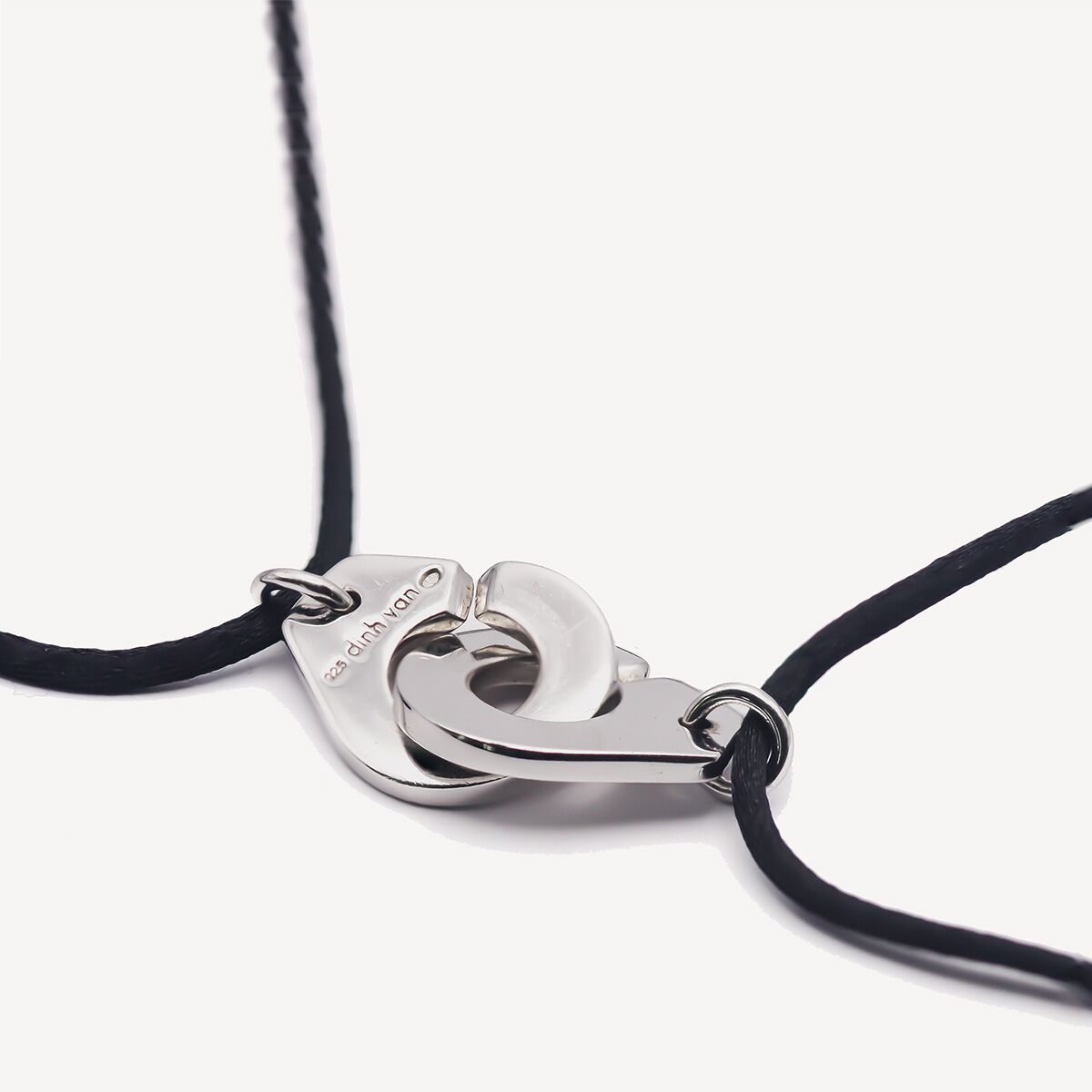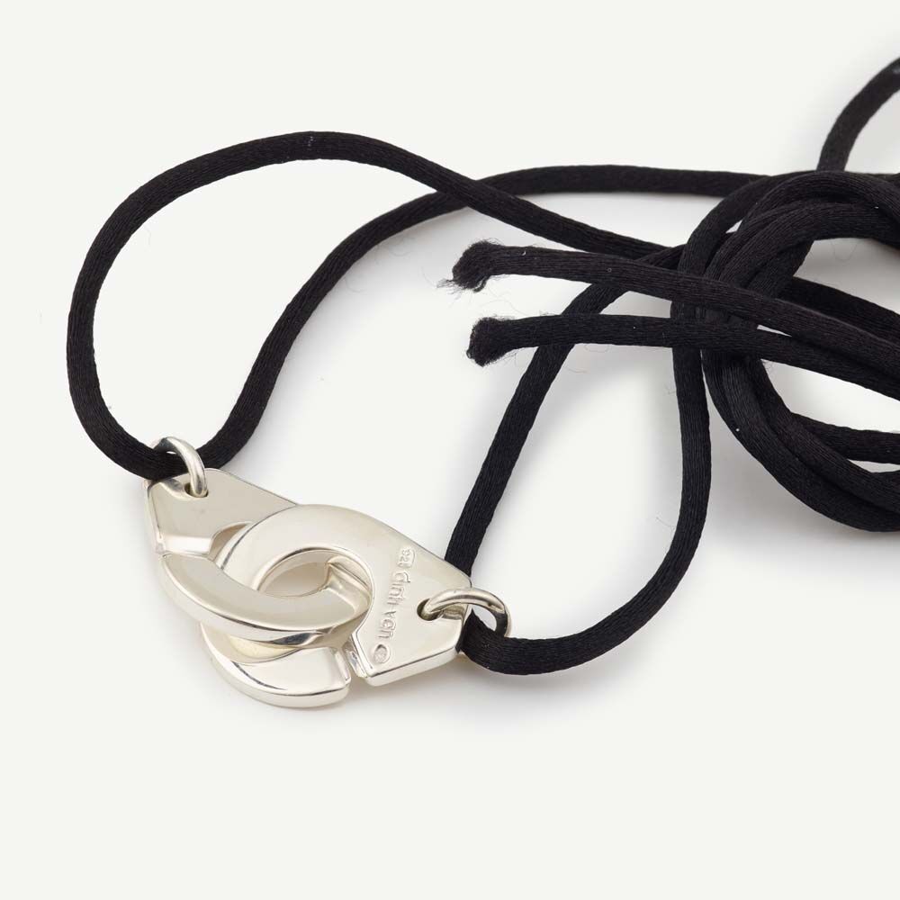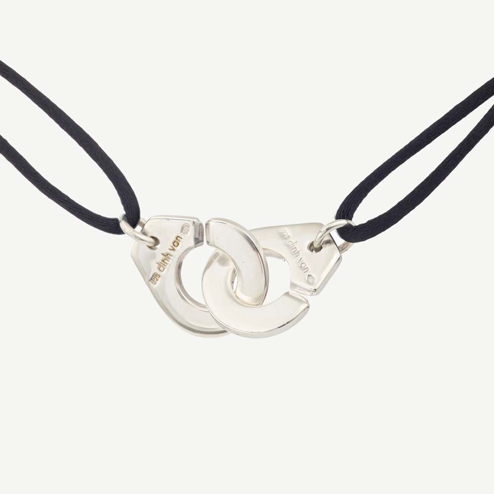 Collier Dinh Van collection Menottes, taille R20, composé d’un cordon réglable présentant comme motif une paire de menottes en argent de taille environ 20 mm.