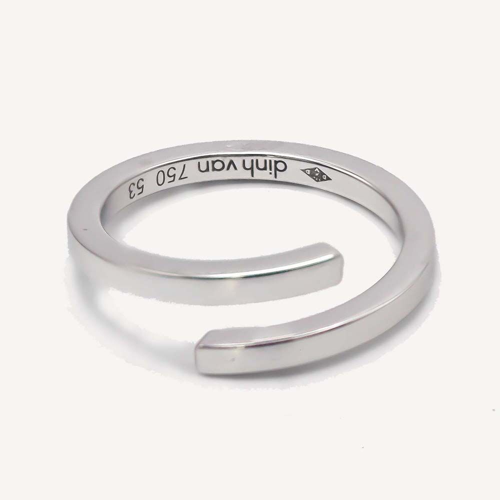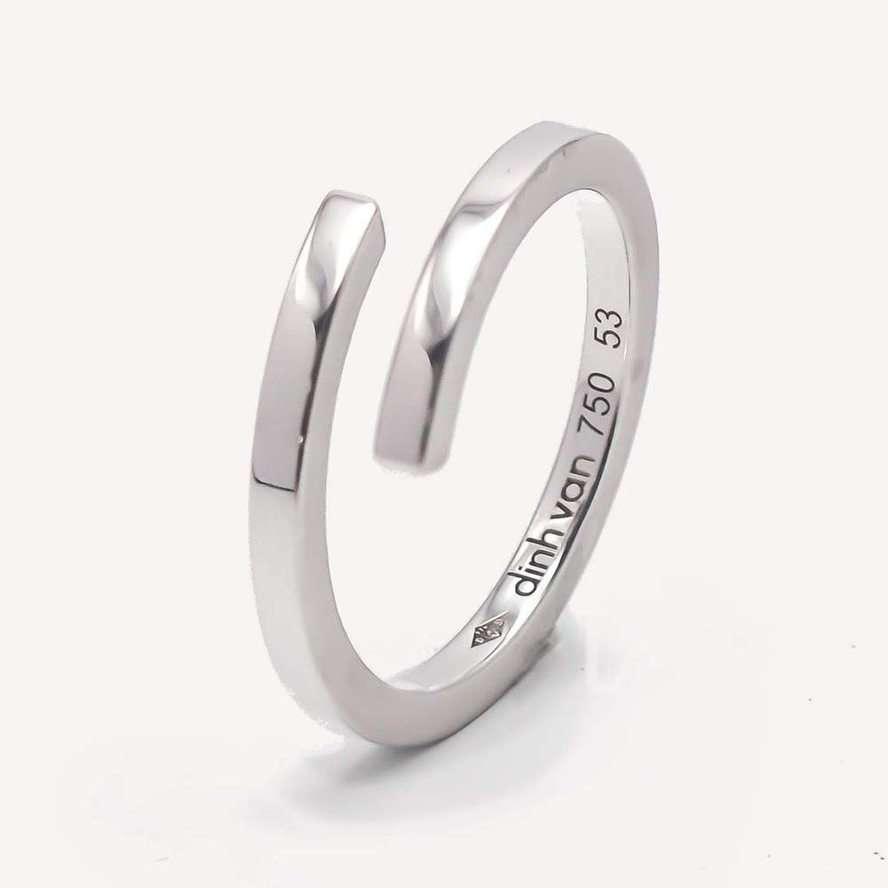 Bague Spirale Dinh Van de seconde main en or blanc 750/1000 (18k) : anneau ouvert à section carrée stylisant une spirale en or blanc. La bague fait un tour sur le doigt. Taille 53.