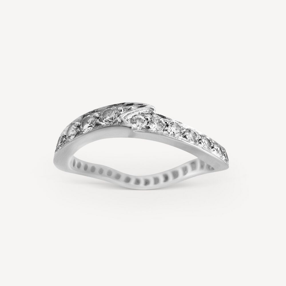 Alliance Couture Petit Tralala pavée Dior de seconde main en Or Blanc 18 carats (750/1000) pavée de diamants. Un anneau élégant et raffiné, entièrement pavé de diamants, avec un détail de ruban offrant une allure couture.