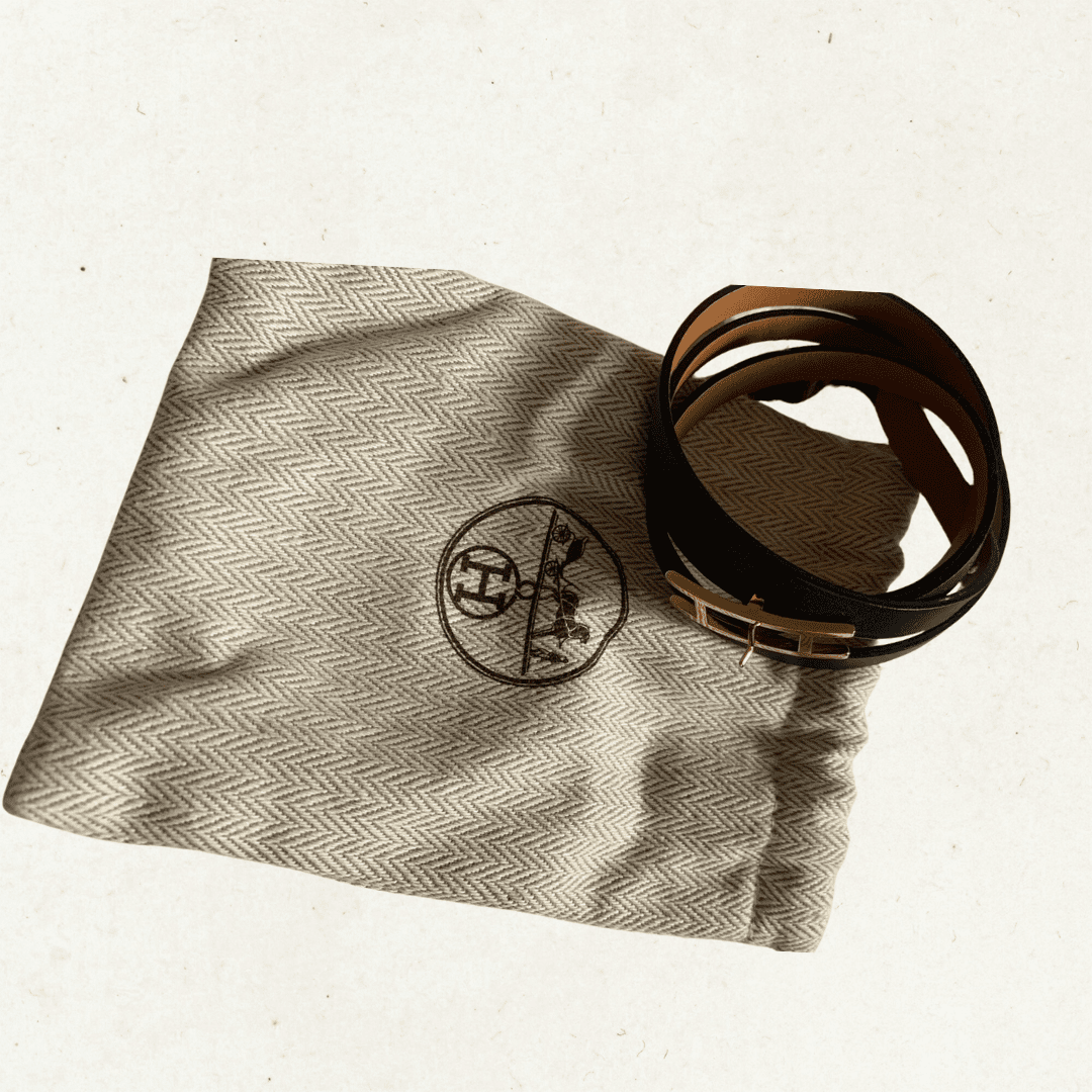 Cette boucle emblématique stylisant un H est créée à l’origine pour les accessoires et les bijoux, puis s’étend aux autres lignes de la marque. Son nom joyeux a une signification bien particulière et clin d’oeil à son créateur : Hapi en hommage à Pierre Hardy, leur créateur, et Be pour bi matière ou réversible. Hermès se joue des conventions avec ce bracelet double ou triple tour qui a connu un incroyable succès et est devenu une icône.
