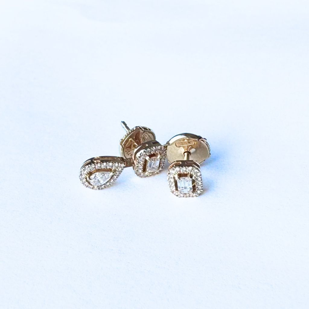 . 2 diamants taille émeraude entourés d’un pavage de diamants taille brillant