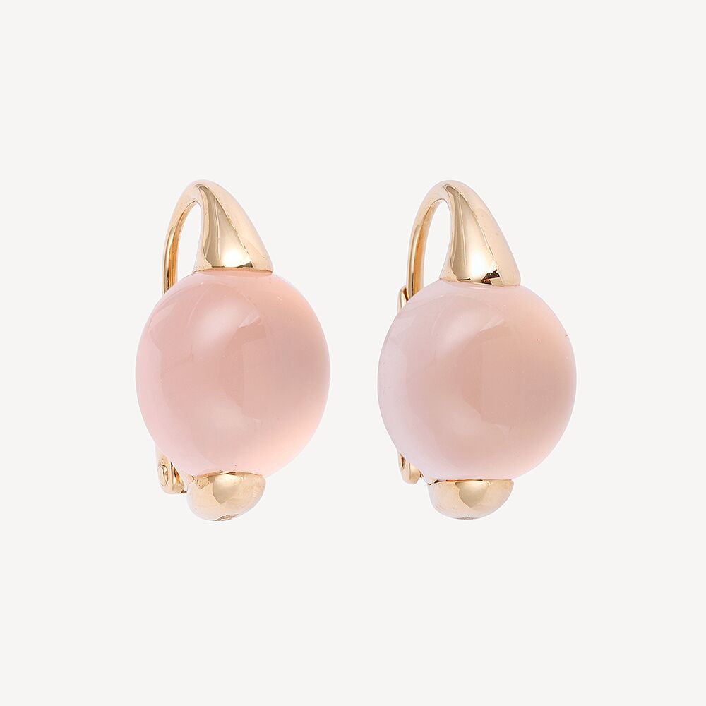 Boucles d’oreilles M’ama non m’ama Pomellato d’occasion en Or Rose 750/1000 (18K) et Quartz rose. Il s’agit d’une paire de boucles d’oreilles « M’ama non m’ama » en or rose 750 millièmes et quartz rose. Les boucles d’oreilles, dans l’esprit dormeuses, sont en or rose et présentent un cabochon de quartz rose. Longueur : 18,5 mm. Largeur : 10,1 mm. Bijou Pomellato signé et authentifié.
