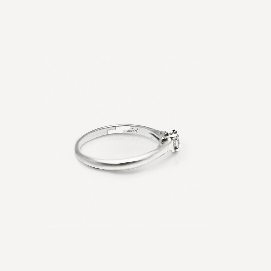 Solitaire Lucida Tiffany & co d’occasion en platine 950/1000 sertie d’un diamant taille princesse de 0,25 carat. Ce solitaire correspond à une taille 54. Bijou Tiffany & Co signé et authentifié.