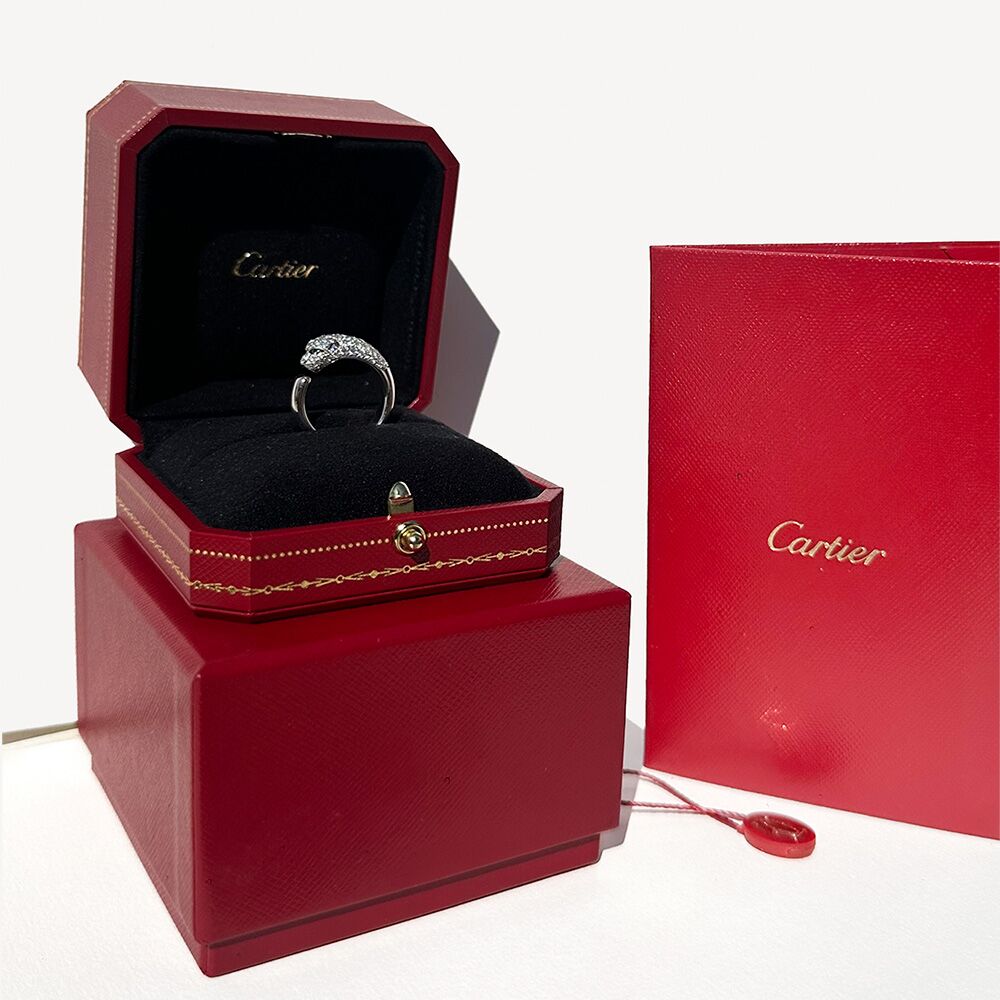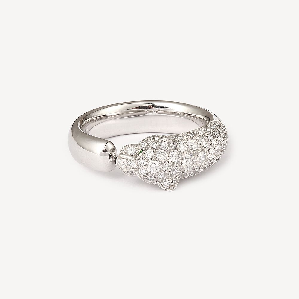A true emblem of the House of Cartier, the panther captivates all attentions and imposes its animal power. This magnificently feminine ring has an allure like no other.