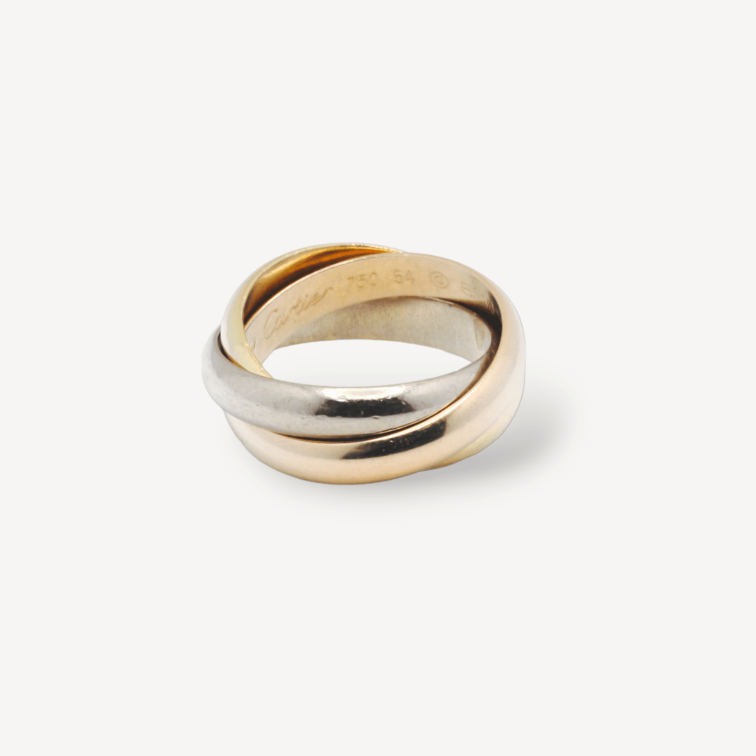 Second-hand Cartier Trinity Grand Model ring. 3 interlaced rings 4.5 mm wide in 750/1000 (18K) Yellow, Rose and White Gold.