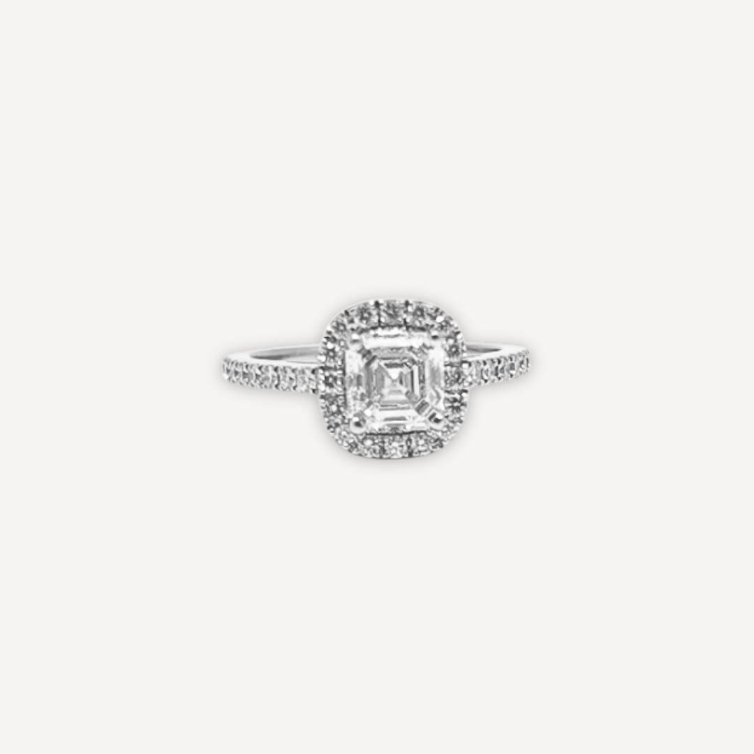 Bague Solitaire coussin Samantha Edouard Nahum d’occasion en or blanc 750/1000 sertie de diamants blanc taille brillant , et d’un diamant taille coussin. Ce solitaire Edouard nahum n’a jamais été porté.