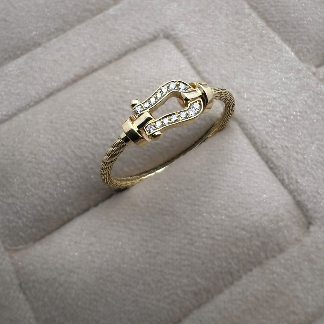 Bague Force 10 Fred PM d’occasion en or jaune 750/1000 (18K) et diamants blancs. Cette bague Force 10 Fred n’a jamais été portée.