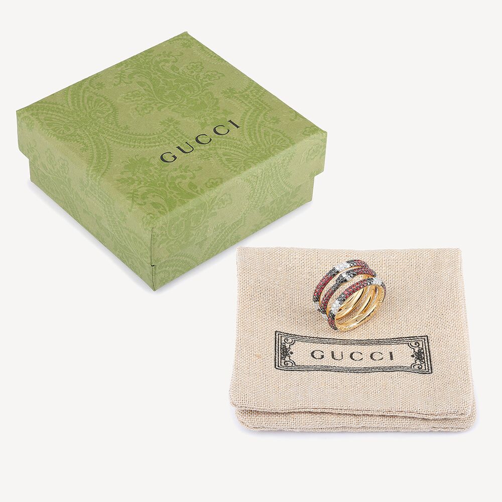 Gucci's Ouroboros collection reinterprets one of the most ancient and mystical symbols: the snake that bites its own tail, the embodiment of eternity and the cycle of life. True to the house's singular universe, this line blends esoteric influences with exceptional craftsmanship, featuring finely crafted gold jewellery, diamonds and precious stones. Each piece captures the bold spirit of Gucci, combining heritage and modernity to create a style that is both bewitching and timeless.