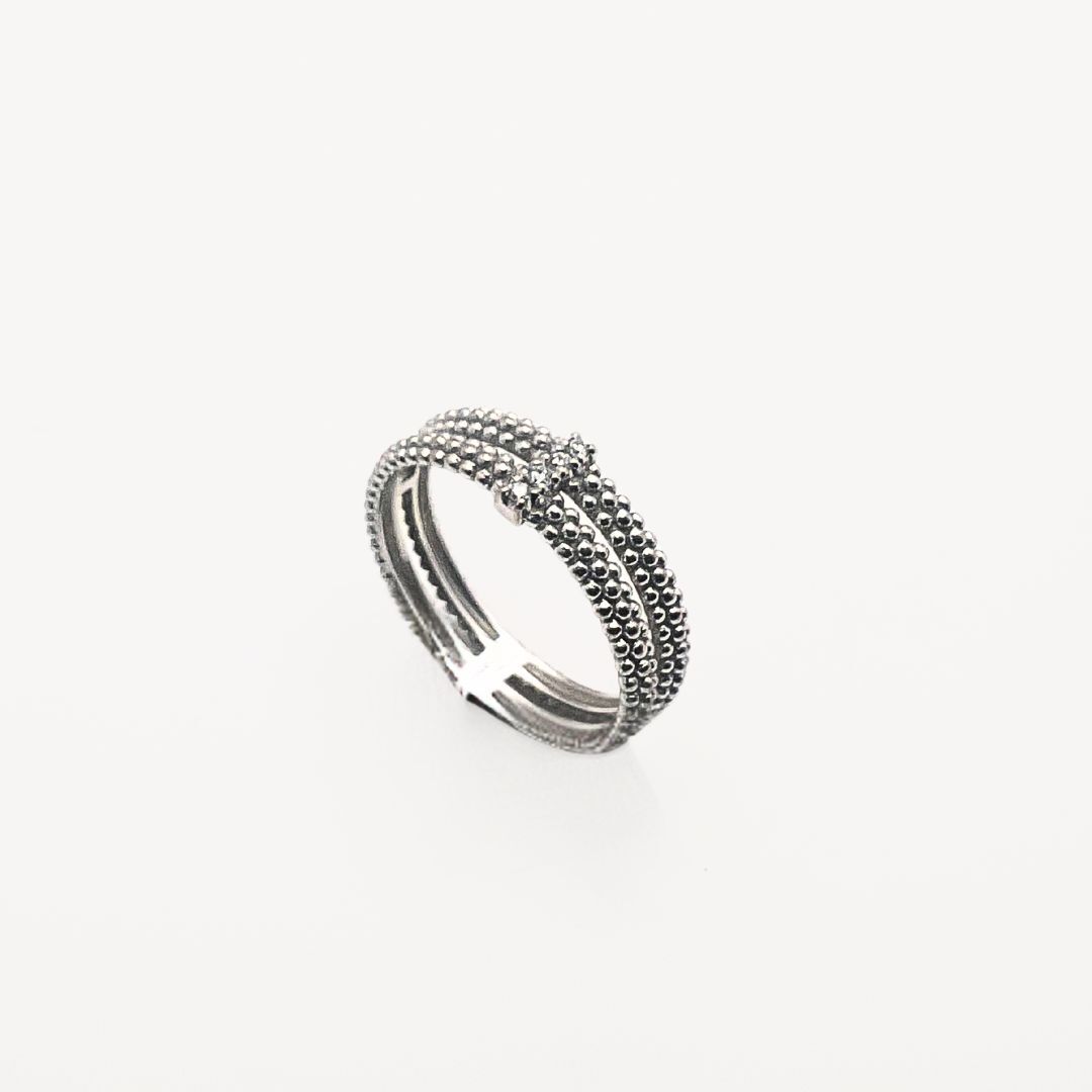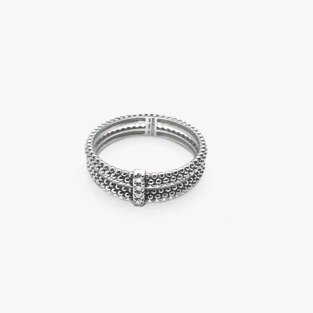 Bague mon premier jour c’est toi N.1 Mauboussin d’occasion, en or blanc 750/1000 (18K) et diamants. Bague composée de deux anneaux au motif perlé et d’une barrette qui les relie, ornée de quatre diamants taille brillant. Bijou Mauboussin signé et en excellent état.