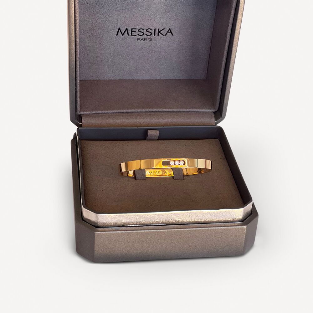 Bangle Move Noa Messika de seconde main en or jaune 18 carats (750/1000) serti de diamants, un jonc élégant au design épuré sublimé par les trois diamants mobiles emblématiques de la maison Messika.