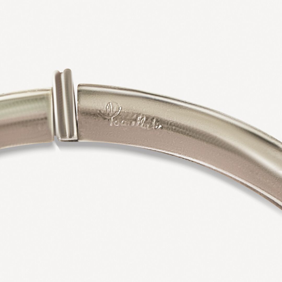 Bracelet Iconica Pomellato d’occasion en or blanc 750/1000 (18K). Un jonc lisse classique signé Pomellato. Bracelet ouvrant Taille XL.
